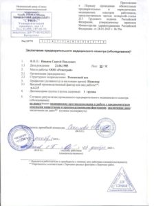 Получение заключения о приеме